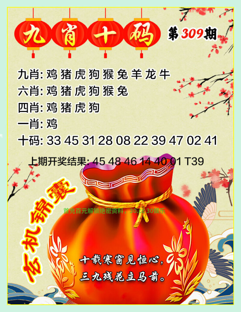 | 308期【牛兔猪龙蛇羊虎鼠猴】开兔39准 |